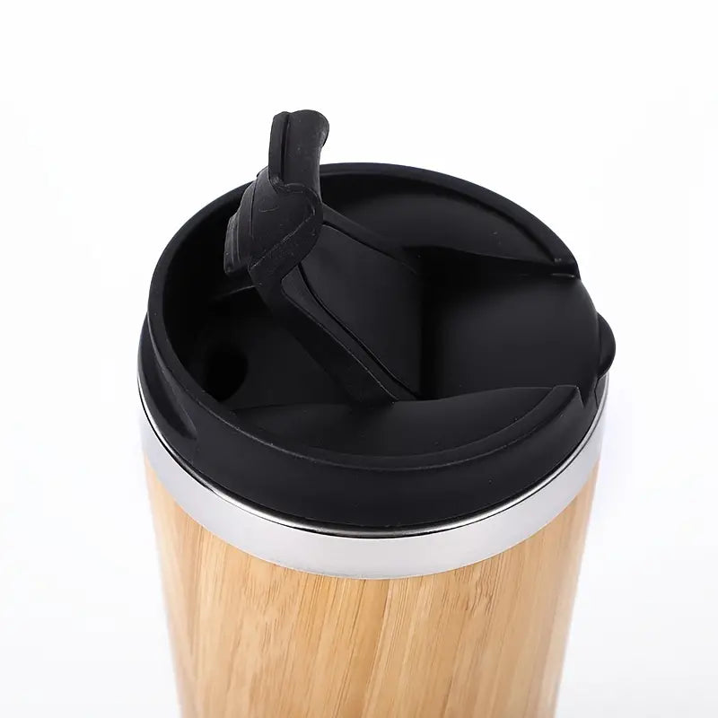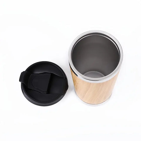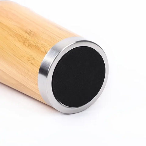 Stainless steel insulated water bottle with bamboo shell keeps drinks hot or cold for 6-12 hours. Choose between a plastic cap for convenient sipping or steel cover for added durability. Lightweight at 0.35 kg, it's ideal for commuting, workouts, and travel. Eco-friendly design meets everyday functionality.